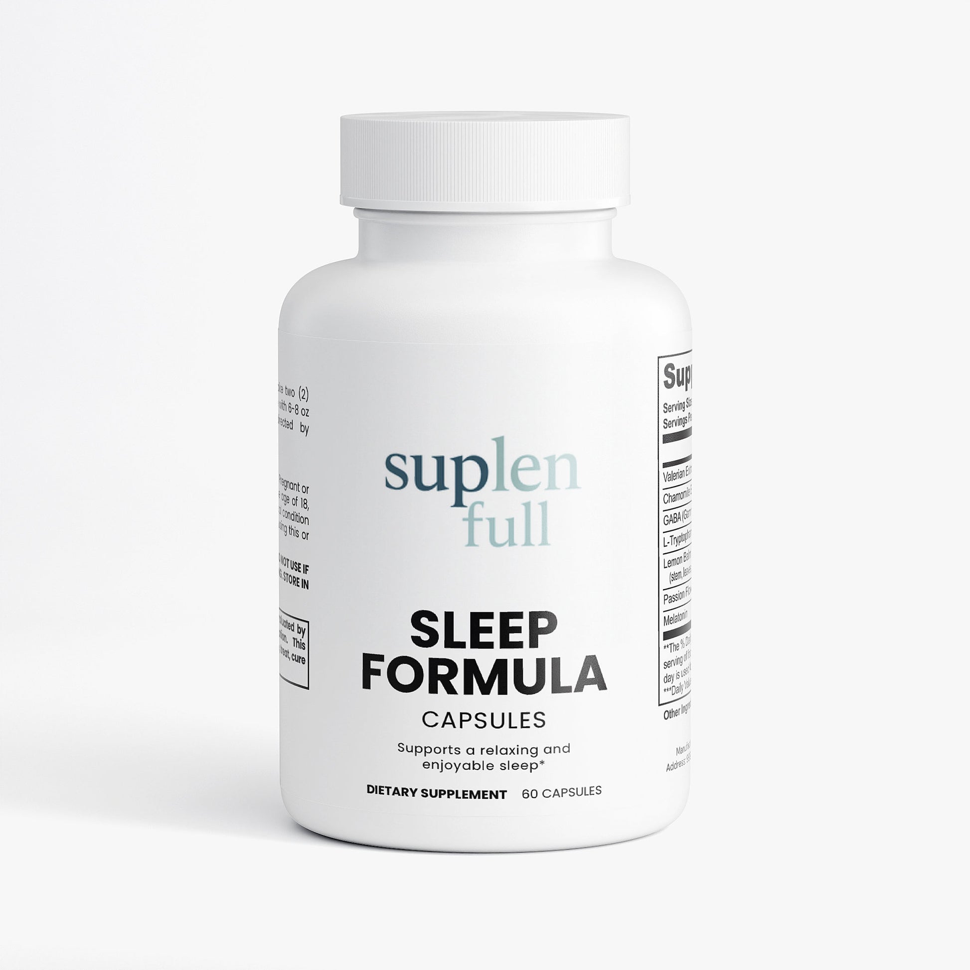 This Sleep Formula is crafted to foster restful and rejuvenating sleep through a blend of natural ingredients. It is designed to promote a tranquil night’s sleep, leveraging the synergistic effects of Valerian Extract, Chamomile, GABA, and more. This carefully formulated supplement supports your body's natural sleep cycle without the use of artificial additives, ensuring a holistic approach to better sleep.*